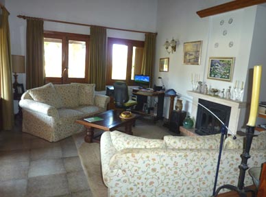 The property is on 2 levels and consists of: Ground floor:- Large covered terrace; entrance door which opens to a hall and stairs to the upper floor; large utility room with a door leading to the garage and another door opening to a small patio; 1 double bedroom with en-suite full bathroom. Upper floor:- a good size lounge complete with wood burner and patio doors leading to a large covered terrace with partial views of the bay; dining room; fully fitted kitchen and 1 double bedroom with en-suite full bathroom. The villa is surrounded by laid gardens and well established shrubs and plants. There is central heating on the upper floor of the villa and air conditioning.