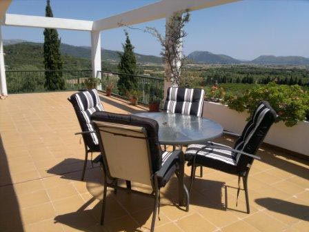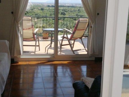 There is a wide wooden spiral staircase leading to the second floor where you will find 2 double bedrooms each with built in wardrobes, en-suite bathrooms and doors leading to the other spacious balcony; kitchen diner which has access to a smaller balcony located at the rear of the property. The lounge area looks out onto the view from patio doors that open to the balcony. There is air conditioning throughout on this floor. A door at the top of the spiral staircase, when closed makes this floor completely self contained as it does have a separate entrance from the grounds.