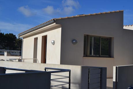 The property consists of: first floor: Cloakroom with WC; lounge/dining room with patio doors opening onto a terrace with splendid views across the bay of Molins; fully fitted kitchen; the stairs from the lounge lead down to 2 single bedrooms and 1 double, all bedrooms have doors leading to the private garden. From the community pool there are steps leading down to the beach.